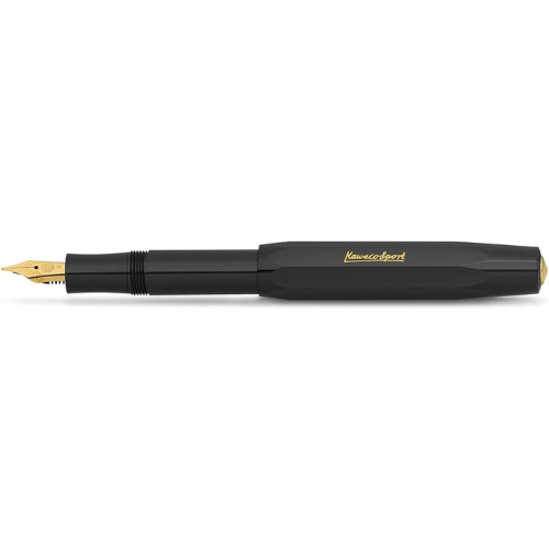 Kaweco CLASSIC SPORT Fountain Pen Black with 23 Carat Gold-Plated Steel Nib and Iridium Tip for Ink Cartridges I Sport Fountain Pen 13 cm I Nib: EF (Extra Fine)