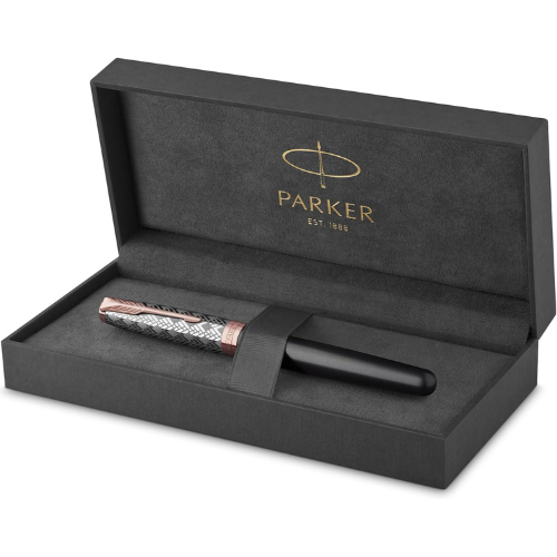 Parker Sonnet Fountain Pen | Premium Metal and Grey Satin Finish with Rose Gold Trim | Fine 18k Gold Nib with Black Ink Cartridge | Gift Box