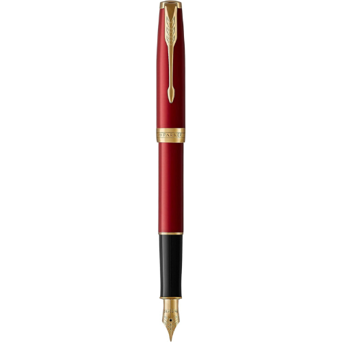 PARKER Sonnet Fountain Pen, Red Lacquer with Gold Trim, Medium Nib (1931474)